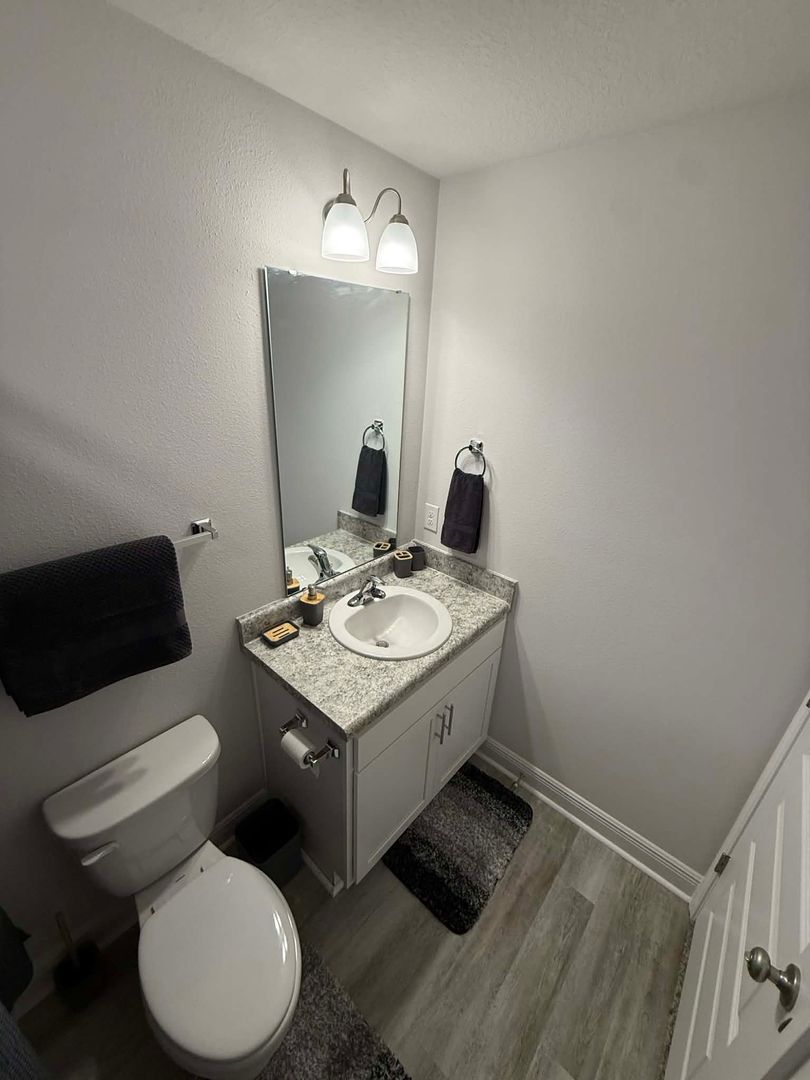 This end cap, 3 bedroom, townhome is just perfect for those looking for a little peace and quiet without sacrificing the convenience of being close to NAS. Constructed in 2025, this home features lots of modern touches starting with wood laminate flooring through most of the home that pairs wonderfully with the flush mount lighting and soft-toned paint scheme featured throughout the home. The open concept floor plan affords flexibility in arranging furniture and makes this space ideal for entertaining family and friends. The kitchen is upgraded with a suite of appliances and granite counters and the breakfast bar offers additional options for dining. Also downstairs you'll discover a half bathroom perfect for guests and access to the single car garage. The 2nd floor hosts the bedrooms and laundry (units included as is). The owner's bedroom offers a spacious, walk-in closet, and the adjoining bathroom includes dual vanities and a walk-in shower. You'll find plenty of space in the guest bedrooms too. Contact our office today to check this one out.