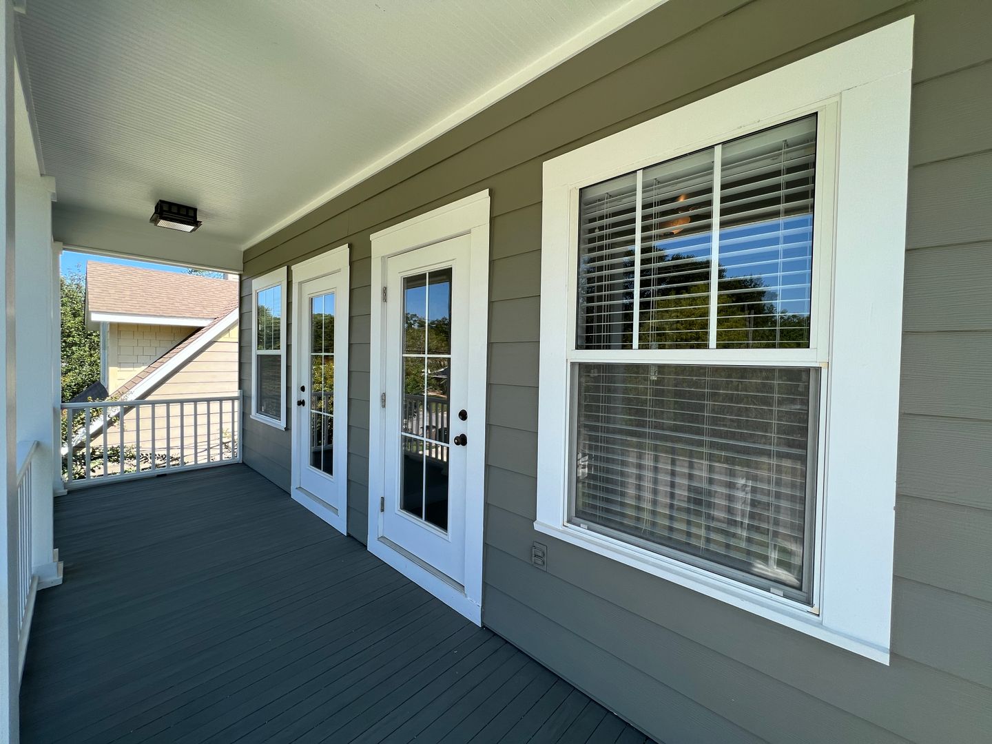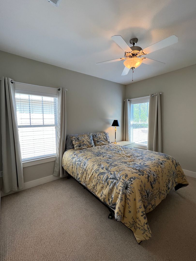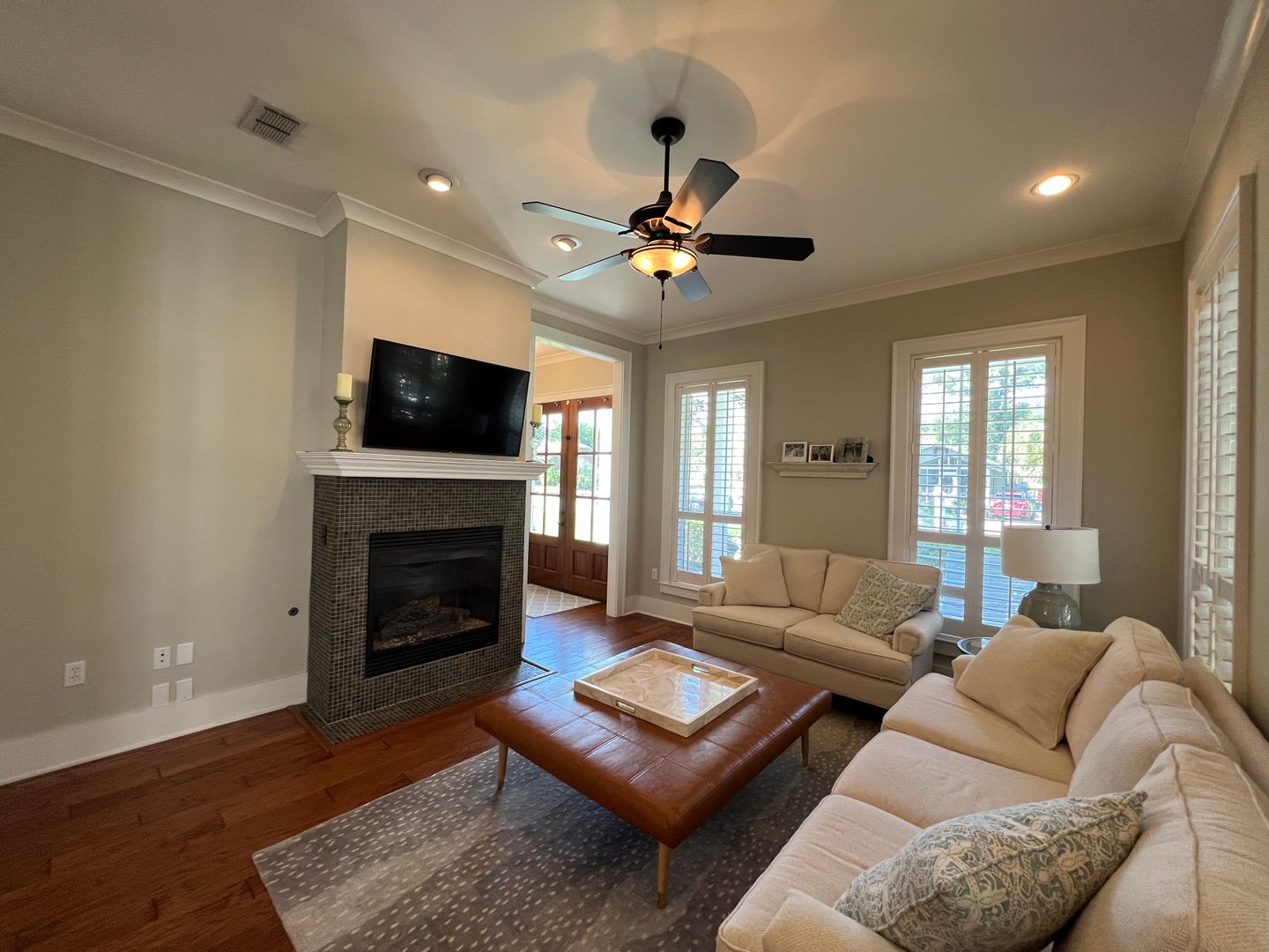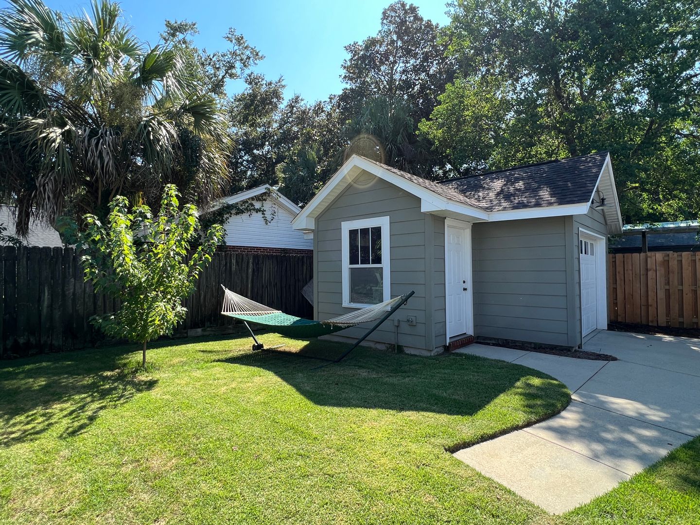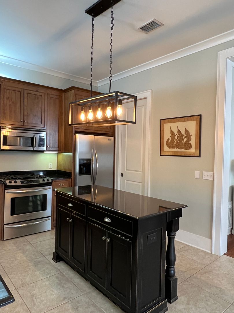 This beautiful and elegant East Hill homes offers access to parks, boutique shopping, and downtown Pensacola. This walker/biker friendly community offers sidewalks for strolling and taking in the charming views of old oak trees dripping with Spanish moss and historic buildings. Amidst all this and more, you'll discover this beautiful and sophisticatedly designed two story home. A well maintained lawn with simple and sharply kept hedge greet you upon arrival. The home's driveway ultimately hides a wonderful backyard space and single car garage. From the street you can take in the porch and balcony that serve as great spots for relaxing in the mornings and evenings. Through the French door entry you'll find yourself in the home's foyer with easy access to the staircase and powder room. Here too you'll get the first taste of the elegant features that run throughout this home with the large baseboard and crown molding that pair perfectly with the soft-toned paint scheme found in the home. A large portal to your left offers access to the living room. A number of tall windows with plantation shutters allow for plenty of natural light and leave the space feeling airy. The focal point of the living room is the micro-tiled fireplace that gives just a touch of modern vibe to the space. Beyond the living room you'll find the formal dining space. Here too is a large window that provides more natural light and the whole room rests under a beautiful and large, black iron chandelier. The formal dining room gives way to the family dining space and kitchen. Sand colored tile partners with beautiful, wood cabinetry and contrasts perfectly against the black counters. You'll discover the laundry area just off the kitchen and also a landing zone which provides separation between the family dining space and the owner's suite. This landing zone also offers access to the backyard, the covered patio, and the extended patio beyond. The owner's suite will accommodate large bedroom furnishings, and the adjoining bathroom includes dual vanities, a soaking tub with tile surround, and walk-in shower. The guest rooms and additional full bathroom are located on the second floor. A landing area at the top of the stairs makes for a great study or reading space. The balcony is accessible from two of the guest rooms which can also serve as great office spaces. The full bathroom upstairs includes dual vanities and a shower/tub combo; a pocket door entrance to the largest guest room also transforms that bedroom into a kind of in-suite. The home's backyard is a charming space to relax and grill and with plenty of covered seating space you can enjoy it rain or shine. The detached garage holds a single car and a small attached storage room is a great spot for keeping holiday decor.